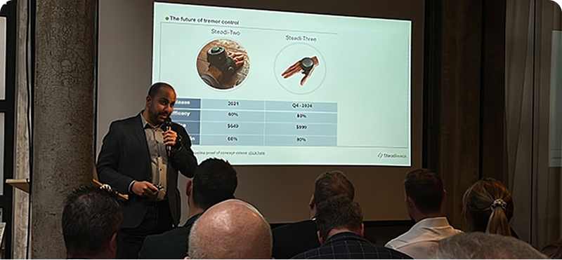 We at Steadiwear are dedicated to developing innovative devices that help manage hand tremors, especially for people living with Essential Tremor or Parkinson’s Disease. Our flagship product, Steadi-3, is a glove-like stabilization device designed to reduce tremor amplitude and support finer motor control. With over 15 years of expertise in vibration mechanics and hand tremor dynamics, we are committed to empowering individuals to regain control in their daily lives.