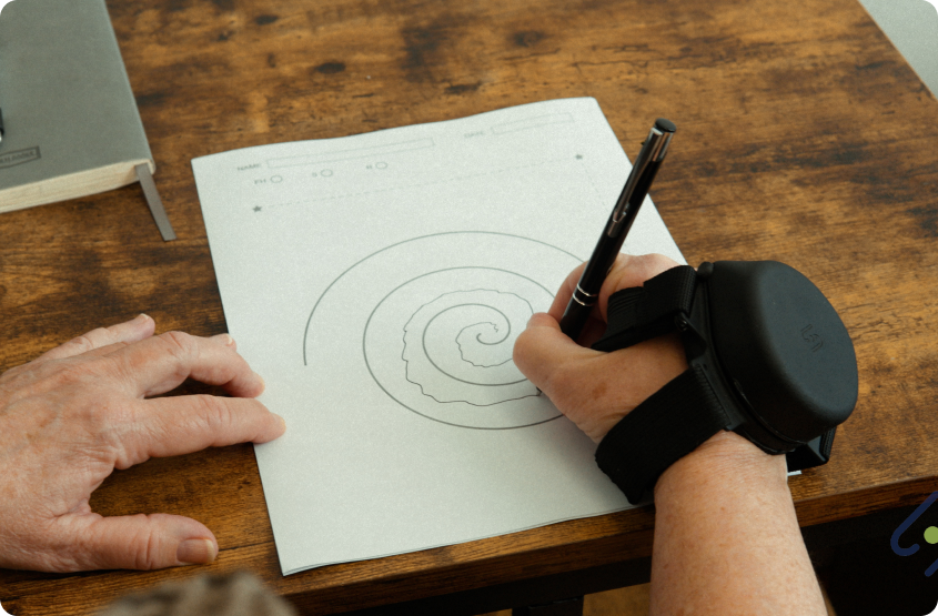 Designed for individuals with Essential Tremors & parkinson's, this non-invasive assistive device provides a safe and effective way to manage hand tremors, eliminating concerns about side effects or surgical interventions.